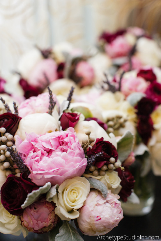 The perfect combination of floral for a winter bouquet that’s full of color and drama. Floral by Tamara Menges.