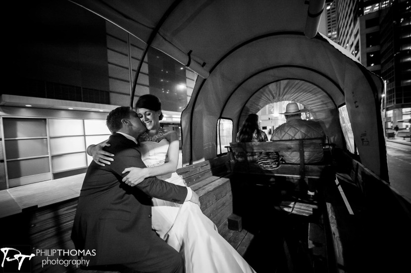 The reception entertainment was action packed – Radio London Band kept guests on their toes all evening, custom silhouettes by Silhouettes by Cindi Rose served as favors as well as flip books by Anchor Entertainment, also customized with an image of a vintage post card of the Julia Ideson Library. As the night ended, the newlyweds were whisked away in a wagon(yes, a wagon!) as a nod to their Oklahoma roots. It was quite literally a wedding for the books!